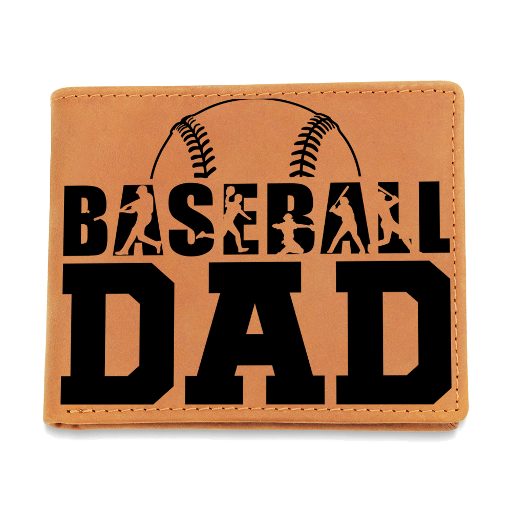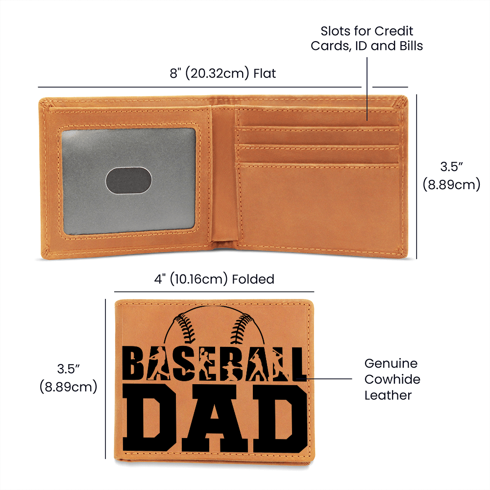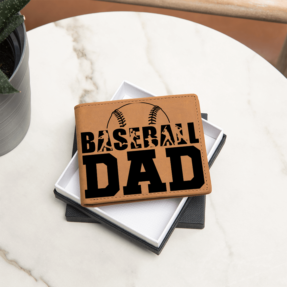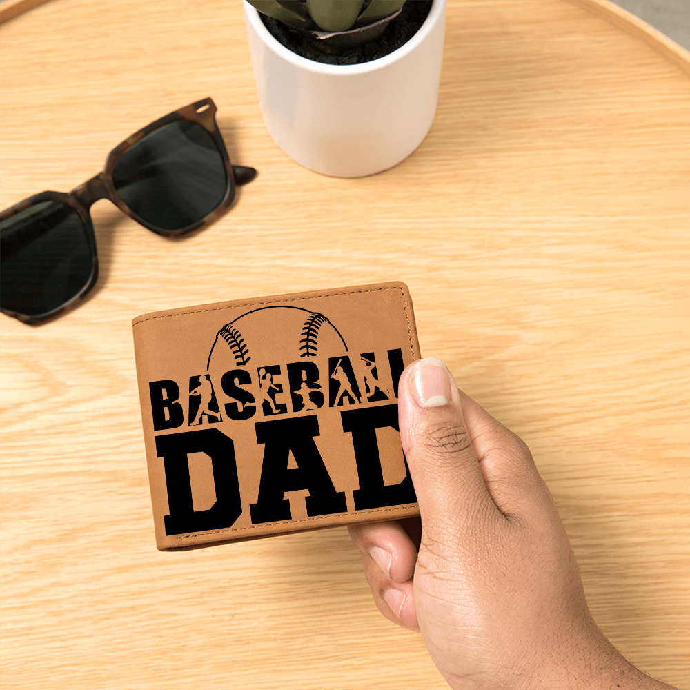 Gift the special man in your life a high quality leather wallet, featuring the word "Dad" embellished with cutouts of baseball players and topped with a striking large baseball image. This wallet combines style and functionality for any baseball enthusiast. Perfect for Father’s Day, birthdays, or any occasion, this wallet is a heartfelt tribute to his love for the game and his role as an amazing dad. Let him carry a piece of his passion wherever he goes!