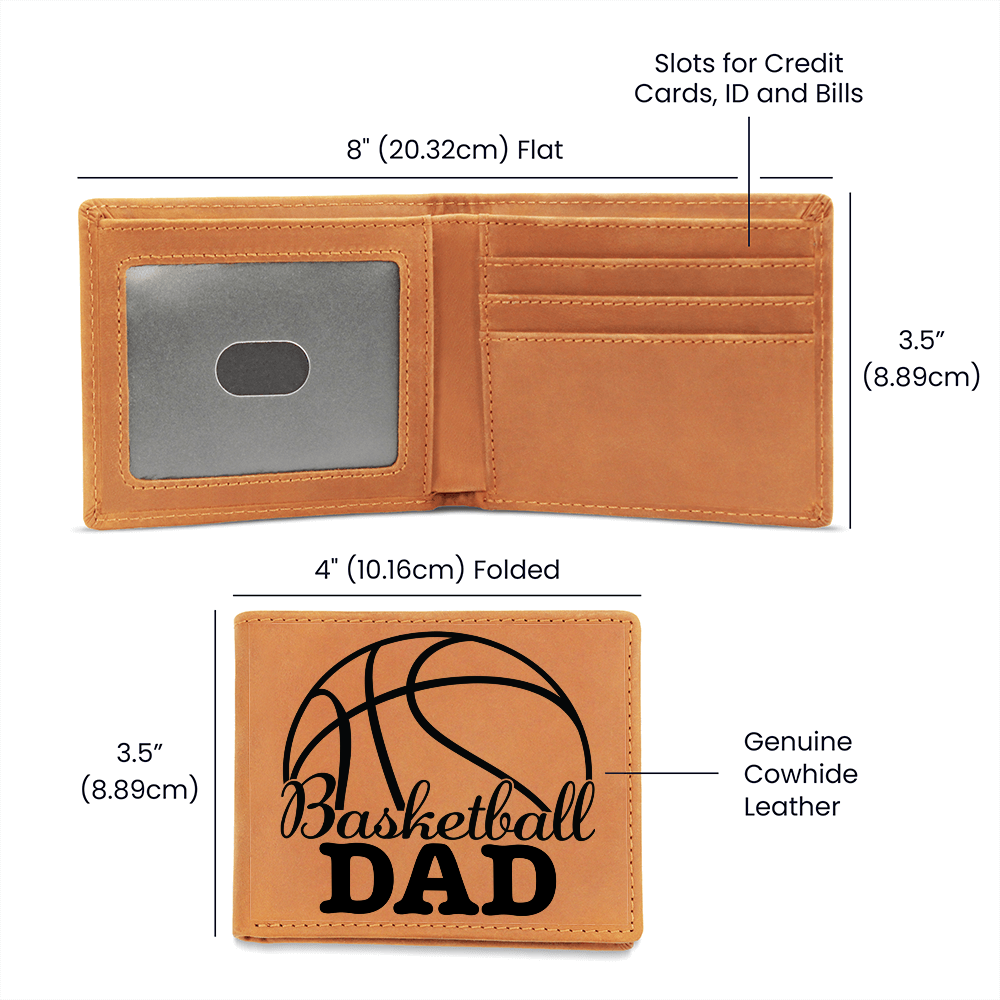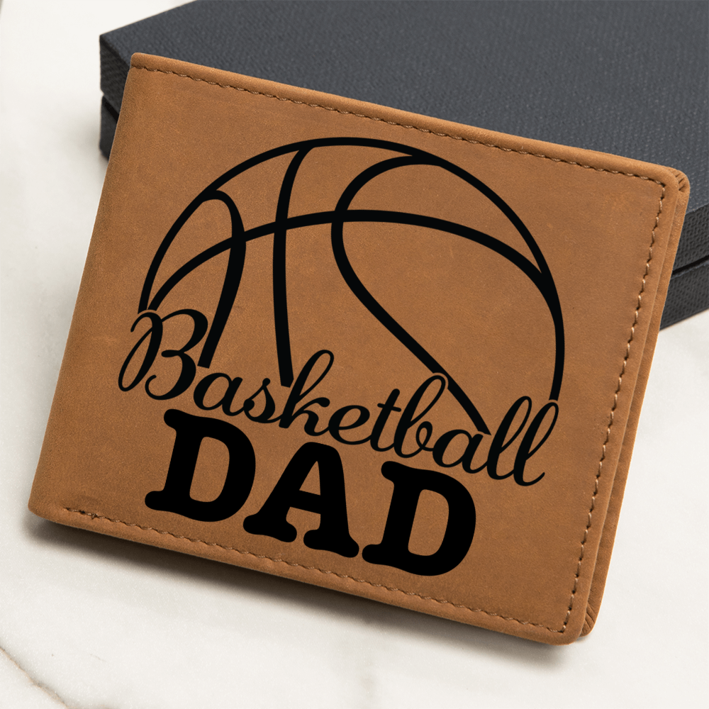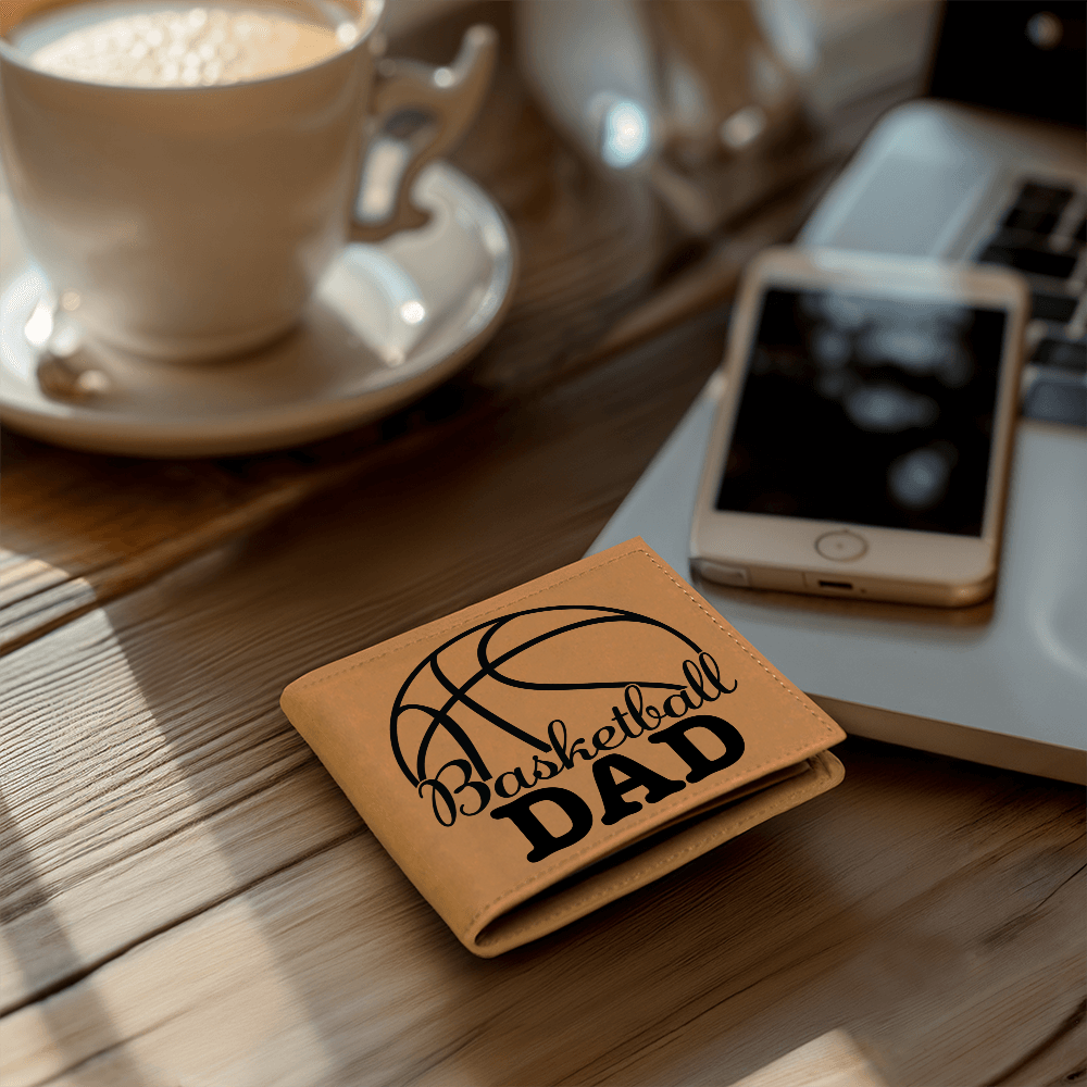 Elevate his style with our "Basketball Dad" leather wallet, featuring a striking black outlined basketball design. This high-quality accessory is perfect for the special man in your life, making it an ideal gift for Father's Day, birthdays, or any occasion. Durable and functional, it combines practical use with personal flair. Show him he’s the MVP with this thoughtful gift!
