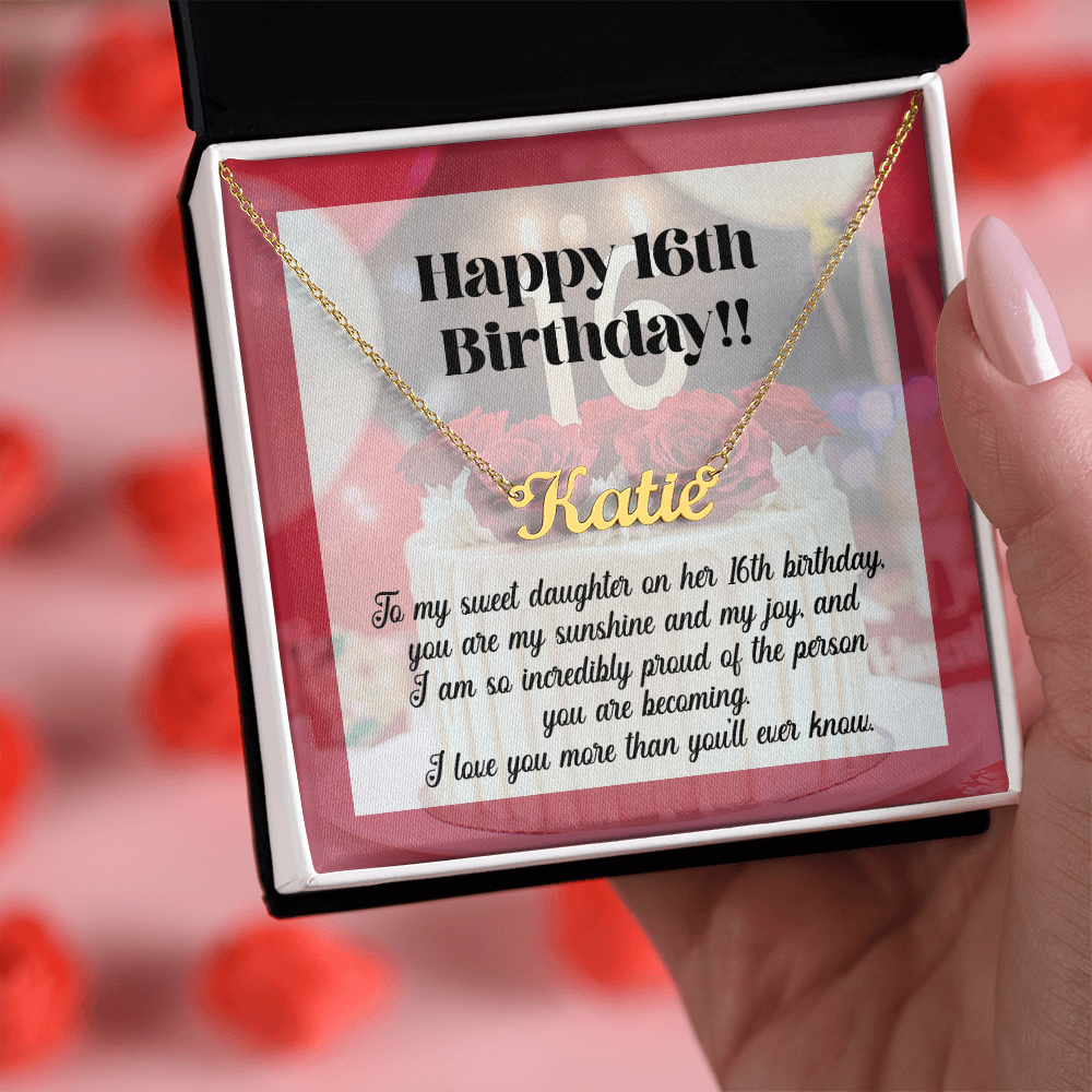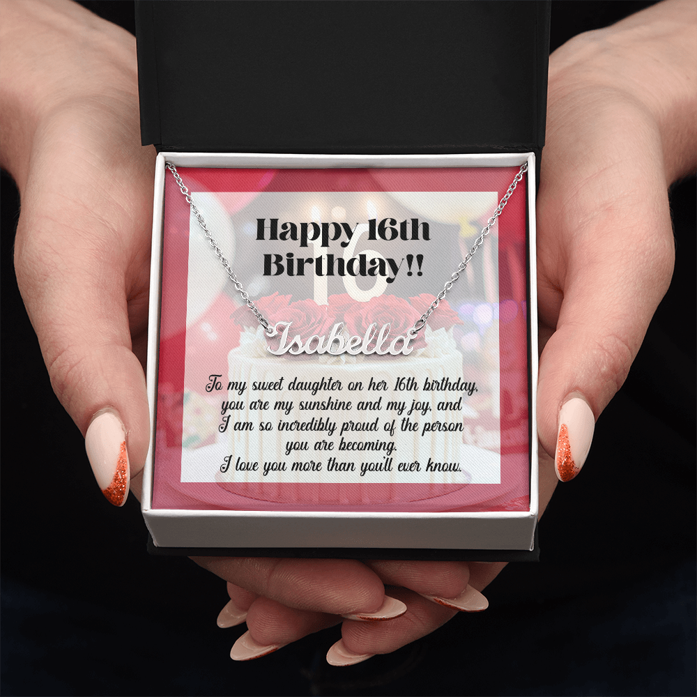 Give her a gift she'll always hold dear: a personalized Sweet 16 necklace from her loving family. This elegant piece symbolizes our pride and deep love for the wonderful young woman she's becoming. A perfect way to celebrate this milestone. ❤️